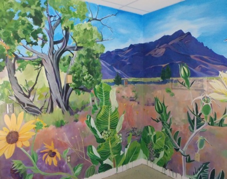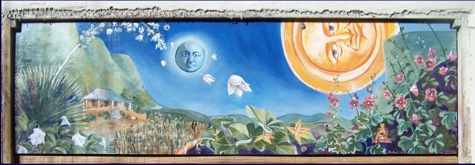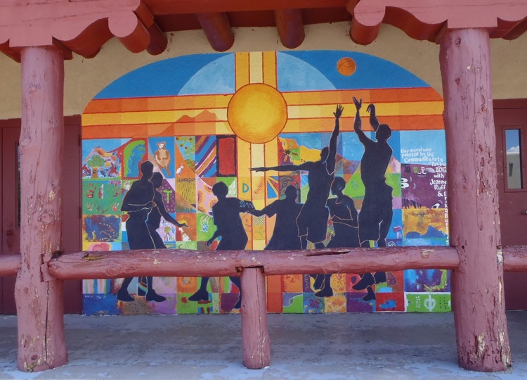 Community Art Project Finley Gym, south of the Plaza in Socorro, New Mexico. Acrylic on Stucco, 12'x 10' (2012)